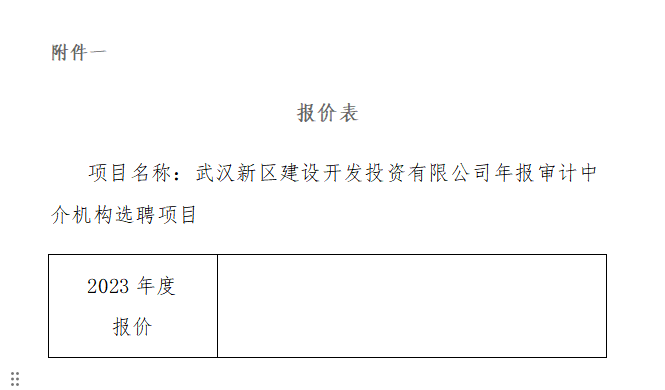 武漢新區建設開發投資有限公司2023年度年報審計中介機構選聘項目
