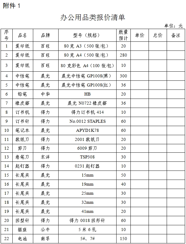 附件:1.辦公用品類報價清單