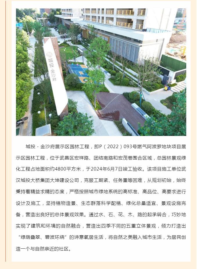 四金一銀,武漢城投捧回一批市級園林綠化優(yōu)質(zhì)工程獎