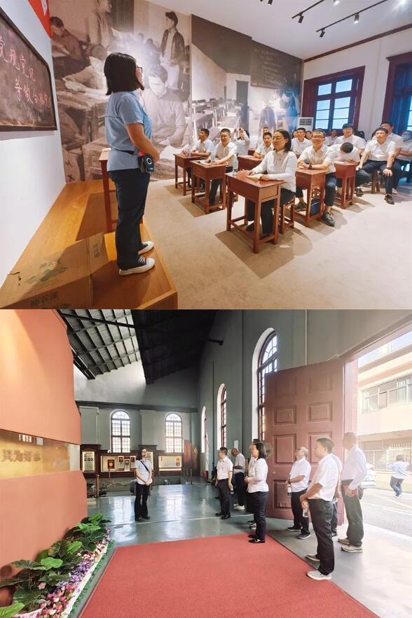 在既濟水電公司宗關水廠舊址及產業工人展展廳,宗關水廠工作人員生動講述著那段波瀾壯闊的歷史。1922年,武漢水電業第一個工會組織在這里誕生,猶如一顆希望的種子,播撒下工人團結奮斗的信念;1925年,武漢水電業第一名共產黨員在此發展,如同一盞明燈,照亮了前行的道路;1926年,武漢水電業第一個黨組織在這里成立,恰似一座堅實的堡壘,引領著工人運動蓬勃發展。黨員們凝視著既濟水電公司股票展品,端詳著百年武水壁畫、公事房、老泵房、水塔建設等歷史照片,仿佛穿越時空,親身感受著武漢供水事業的百年滄桑與輝煌成就。在這里,每一個物件都承載著歷史的記憶,每一幅畫面都訴說著先輩們的奮斗故事,讓黨員們深刻感悟到中國共產黨領導工人運動和推動自來水事業砥礪前行的紅色印記。