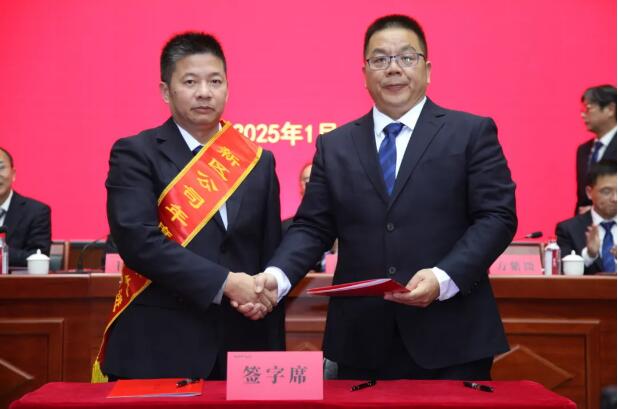 公司總經(jīng)理、黨委副書(shū)記、董事方紫微與公司部門(mén)代表、所屬單位代表簽訂2025年目標(biāo)責(zé)任書(shū)。