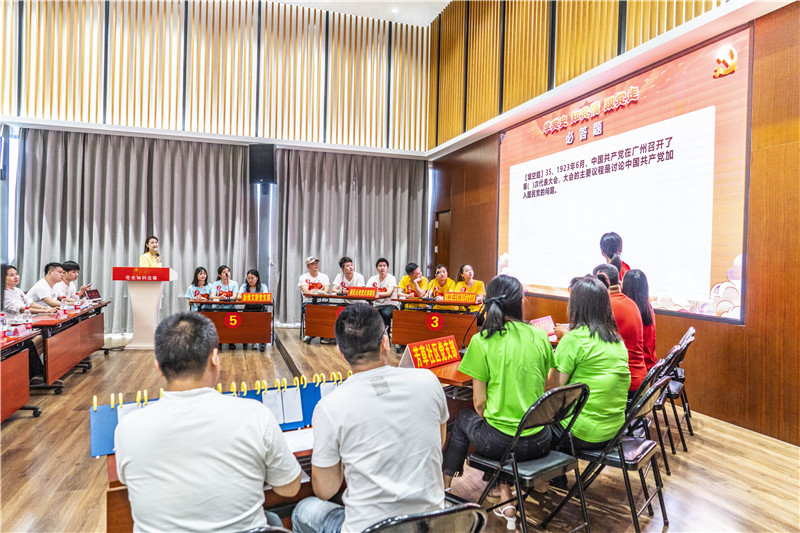 本場黨史知識競賽分為必答題、搶答題、100秒快答和風險題四個環節。比賽中,5支參賽隊的隊員們在各類黨史問題面前全神貫注,積極搶答,展現了他們扎實的黨史知識儲備和團隊協作精神,每次答對后,現場都響起陣陣掌聲,場面熱烈活躍。比賽期間,各隊參賽選手代表共同朗誦了詩歌《有一頁歷史》,演繹了歌曲《陽光總在風雨后》,深情表達了對黨的熱愛和對未來的展望。