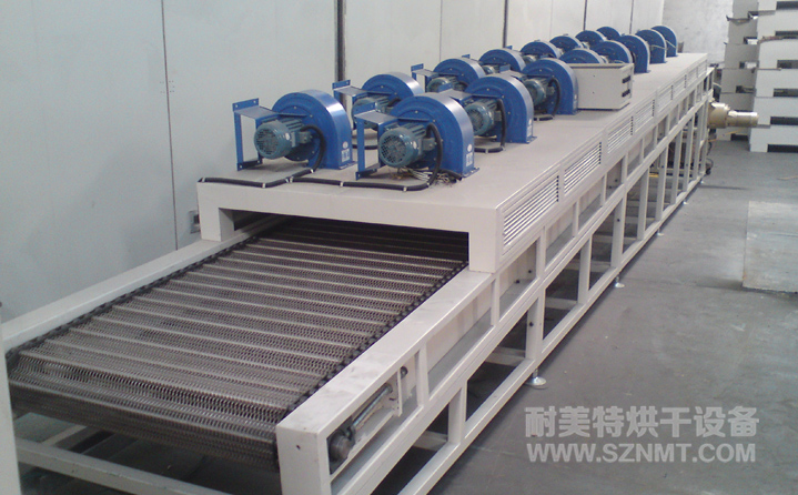 進料部分長1200mm,烘干部分長16000mm;底部到網(wǎng)帶的高度為1100mm ;