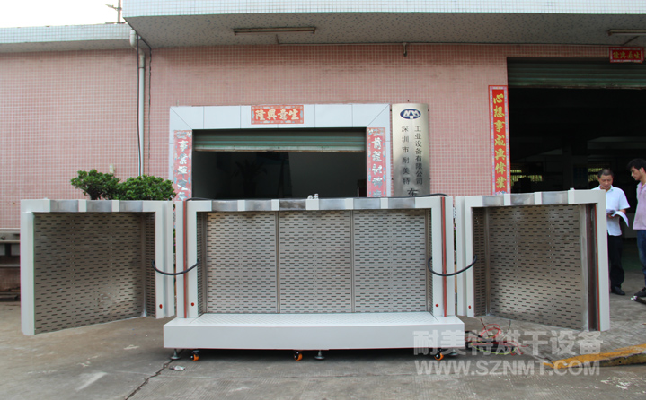 內(nèi)膽材質(zhì)采用1.5㎜厚SUS#304鏡面不銹鋼板制做,不生銹,使爐內(nèi)清潔、無塵。內(nèi)膽尺寸:寬2.2米,高1.1米,深0.45米。內(nèi)膽四周鋪100mm厚高溫隔熱棉,門邊四周增加耐高溫密封硅膠,使爐外溫度不燙手。