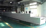 2、外形尺寸(約):總長24000mm*總高1690mm*總寬1220mm,地面到網(wǎng)帶的高度為850mm,爐體內(nèi)進料高度為150mm;烘干部分總長14000mm,分7段獨立控溫(每段4個測溫熱電偶),每段2000mm。冷卻段長4000mm,UV預留區(qū)長2000mm,前后緩沖區(qū)各長500mm,進出料部分長1500mm, 爐體前后裝有急停開關。
