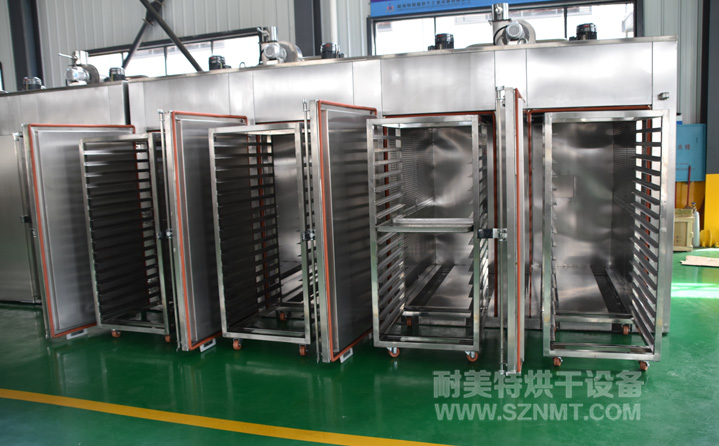 1、烘烤產(chǎn)品:烘箱內(nèi)放置8臺尺寸為W720*940*1675的推車(推車尺寸與供方原有的同尺寸),每臺推車上32件托盤;